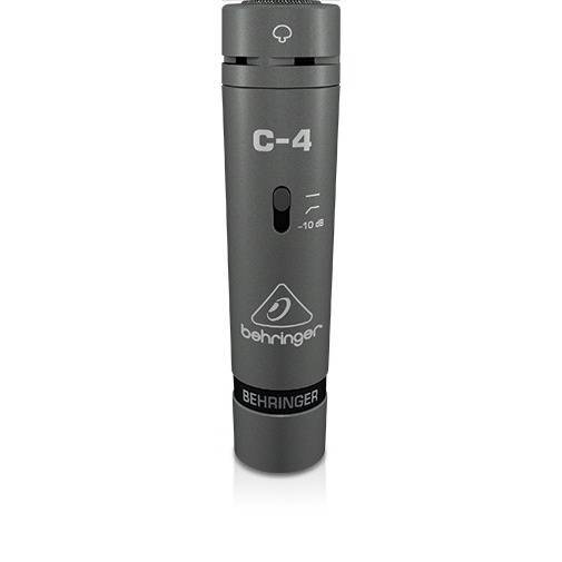 Конденсаторные микрофоны C-4 были созданы на основе достаточно известной и популярной модели профессионального студийного микрофона Behringer C-1. Обновлённая линейка микрофонов серии «С» как правило оснащена облегченной, большой мембраной и системой защиты капсюля от вибрации. На поверхности корпуса микрофона находится переключатель встроенного аттенюатора с переключателем уровня в -10дБ. В дополнение к этому электроника микрофона оборудована обрезным фильтром низких частот. Весьма прочный литой корпус из стали прекрасно защищает электронику микрофона от любых повреждений при ежедневной эксплуатации.