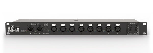 CHAUVET-DJ Data Stream 8 - это оптический сплиттер DMX на 8 каналов. Компактный рэковый сплиттер профессионального уровня Data Stream 8 может быть использован в стационарных, мобильных и профессиональных световых инсталляциях.