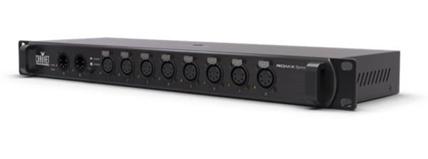 Устройство имеет два независимых входа на разьемах 3pin XLR, 8 независимых выходов на разьемах 3pin XLR. Есть гибкая система маршрутизации, готовые гнезда для крепления и подвеса, страховки. Возможна установка в рек, высота - 1U. Универсальный блок питания 100-240В, вес 2,1кг. Бренд американской компании CHAUVET известен на рынке музыкального оборудования на протяжении достаточного продолжительного времени.