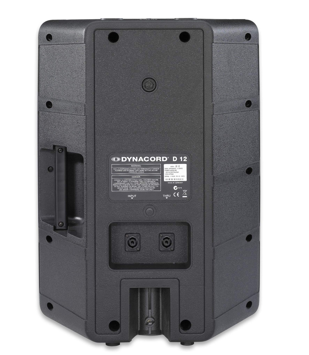 Dynacord D 12 – компактная пассивная двухполосная акустическая система из линейки D-Lite. Модель заключена в лёгкий и прочный полипропиленовый (ABS) корпус, устойчивый к механическим повреждениям. Элегантный внешний вид системы и широкие возможности монтажа позволяют использовать её в залах небольшого и среднего размера, в том числе в фиксированных инсталляциях, когда существенную роль играет не только высокое качество звука, но и сохранение стильного дизайна помещения. Модель может использоваться в клубах, барах и ресторанах, небольших концертных залах, в образовательных учреждениях, сфере мультимедиа, а также группами и ди-джеями для мобильных звуковых установок. Она может использоваться самостоятельно или в качестве сателлита в составе звуковых систем небольшого формата. Модель оборудована 12-дюймовым НЧ динамиком DL12BFH и высокочастотным излучателем ND2 новейшей разработки. Мощность акустической системы – 300 Вт (пиковая – 1200 Вт). Максимальный уровень звукового давления – 129 дБ. Dynacord D 12 выпускается в двух вариантах цветового исполнения. Представленная модель – черного цвета.