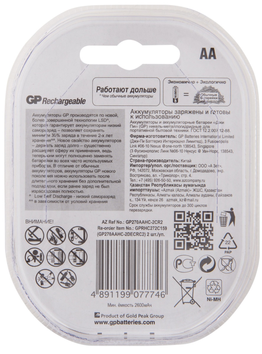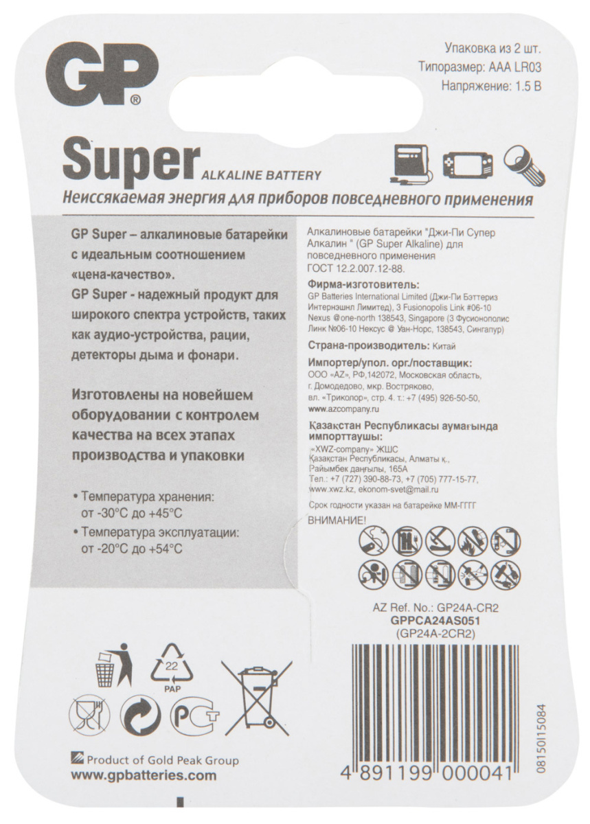 GP 24A-2CR2 Батарейки ААА, 2 шт.