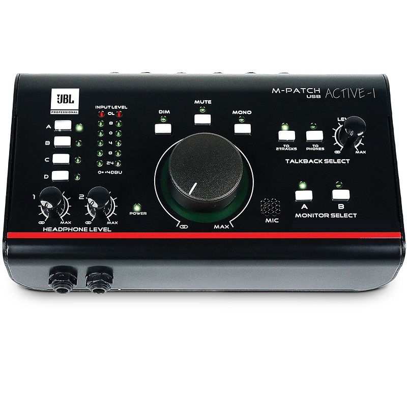 JBL M-Patch Active-1 – современный мониторный контроллер, который позволяет работать с четырьмя источниками сигнала. M-Patch Active-1 оснащён тремя аналоговыми стерео входами и тремя выходами, а также входом и выходом USB. Основная задача устройства – это плавное переключение между входящими сигналами и выходными сигналами, отправляемыми на мониторные системы. Кроме того, M-Patch Active-1 обладает расширенным функционалом, который позволяет выполнять с его помощью все необходимые функции мониторинга, включая точную регулировку уровня сигнала, моментальное заглушение или плавное затухание звука, моно суммирование. Контроллер оснащен встроенным конденсаторным микрофоном, а функцией обратной связи можно управлять с помощью футсвитча. Для наглядности отображения настроек предусмотрена удобная светодиодная индикация. С помощью разъема USB контроллер можно подключать напрямую к компьютеру для прямой записи цифрового аудио или проигрывания материала с использованием программного обеспечения для работы со звуком. Всё это делает M-Patch Active-1 универсальной моделью и отличным бюджетным выбором для выполнения широкого спектра студийных задач. Контроллер заключён в прочный металлический корпус черного цвета. Разъемы и элементы управления отличаются надёжностью и долговечностью.