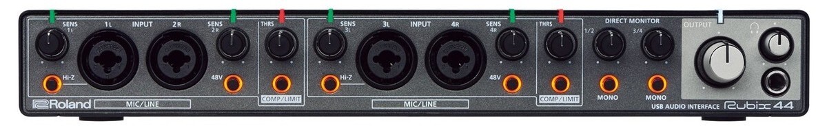 Roland Rubix44 - это внешний аудиоинтерфейс, имеющий 4 входных и 4 выходных канала, USB порт. Устройство совместимо с Mac и iOS-устройствами (iPad), PC. Аудиоинтерфейс способен работать с высокой частотой дискретизации - 24 бит/192 кГц. Особенностью этой модели является по-настоящему студийное качество звучания и звукозаписи, предельно низкая задержка, высокое качество сборки и компактные размеры. Входы интерфейса комбинированные XLR-1/4", выходы - TRS. Есть независимый выход на наушники, стандартный MIDI вход/выход