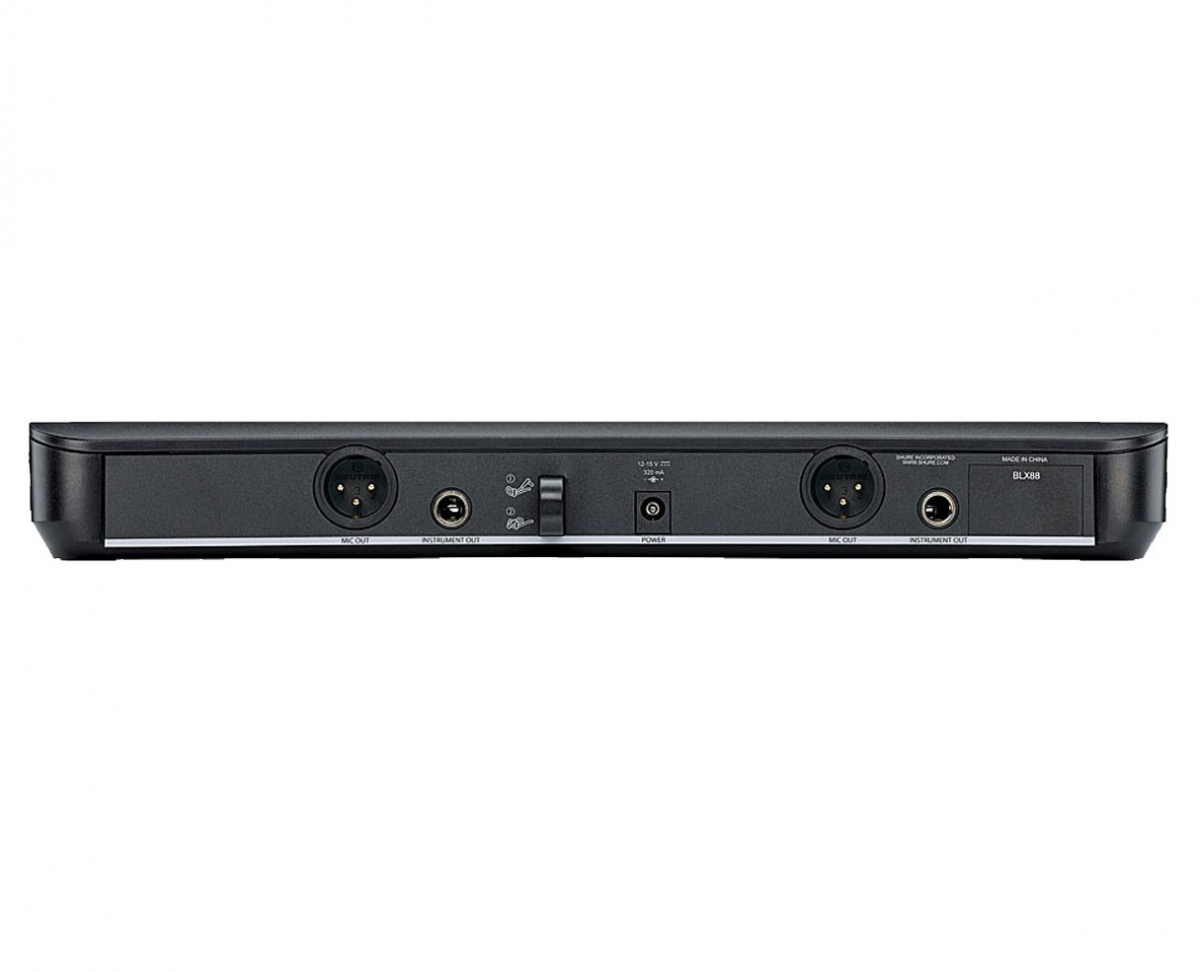 SHURE BLX1288E/SM35 M17 – двухканальная радиосистема профессионального класса из линейки BLX®, позволяющая передавать аудио сигнал с помощью беспроводного соединения, сохраняя высочайшее качество звука. Модель отличается простотой и удобством настройки, имеет эргономичный и интуитивно понятный пользовательский интерфейс. Система эффективно работает при расстоянии между приемником и передатчиками до 100 метров в зоне прямой видимости. В систему входят: двухканальный приемник BLX88, компактный поясной передатчик BLX1, головной конденсаторный микрофон SM35 и ручной передатчик BLX2/SM58. В комплекте поставляется блок питания, держатель для микрофона, клипса для крепления на одежду и ветрозащита. Благодаря использованию технологии QuickScan система быстро находит наилучшую для передачи сигнала радиочастоту из доступных, устанавливая надежную связь приемника и передатчиков. Для коммутации предусмотрены разъемы 1/4 джек и XLR. Передатчики работают от батарей АА 1,5 В, время непрерывной работы – до 14 часов. Для контроля заряда батареи имеется наглядная индикация. Система неприхотлива к внешним условиям и может работать при температуре окружающей среды от -18 до +50 градусов. Рабочий диапазон радиочастот представленной модели радиосистемы - M17, от 662 МГц до 686 МГц.