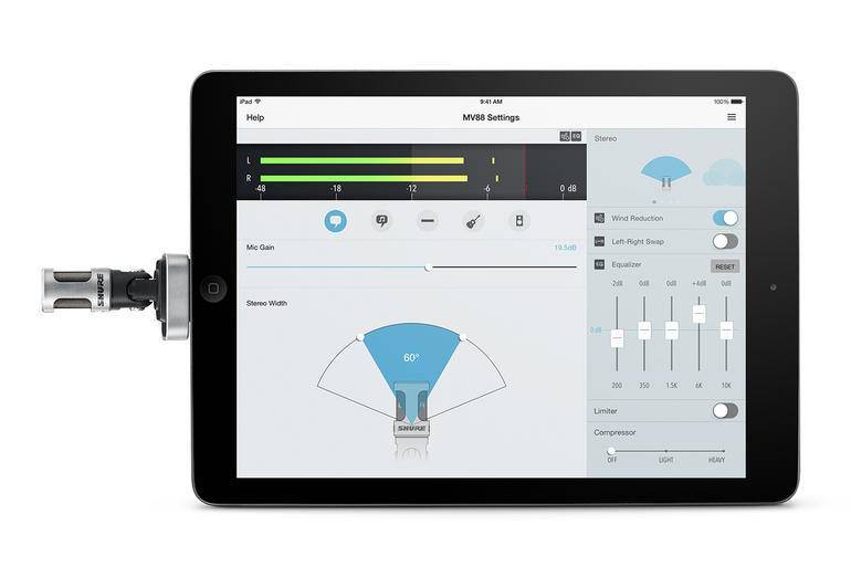 Устройство имеет три встроенных DSP пресета (Вокал «Vocals», ровный «Flat», инструмент «Instrument»), которые обеспечивают оптимальные настройки для практично любых источников звука с великолепным результатом с любого дубля. Встроенный выход на наушники позволяет осуществлять мониторинг в реальном времени. Дизайн низкого профиля и отсоединяемая настольная стойка обеспечивают устройству гибкость и портативность. MV5 имеет в комплекте кабель Micro-B/USB для подключения к PC, Mac или Android и кабель Micro-B/LTG для подключения к устройствам Apple iOS.