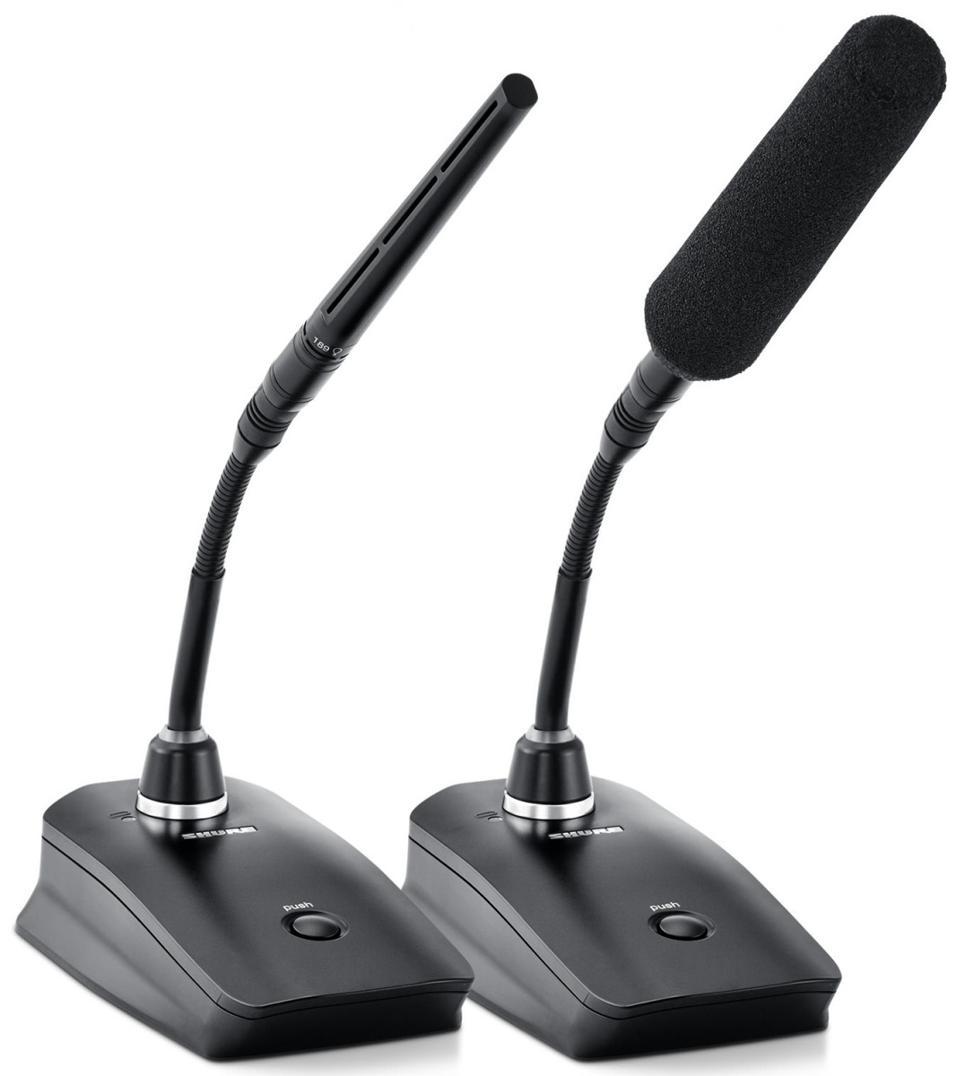 Микрофон SHURE MX410/S – модель конденсаторного микрофона на «гусиной» шее. Этот микрофон создан для четкой и ясной передачи звука во время проведения конференций, лекций и круглых столов. Микрофон чисто и надежно передает звук даже в достаточно большой аудитории. Оборудование имеет сменный капсюль суперкардиоидной направленности диафрагмы. При этом частотный диапазон данного лекционного микрофона составляет от 50 Гц до 17 кГц. По техническим характеристикам, максимальный уровень звукового давления равен SPL 122дБ.